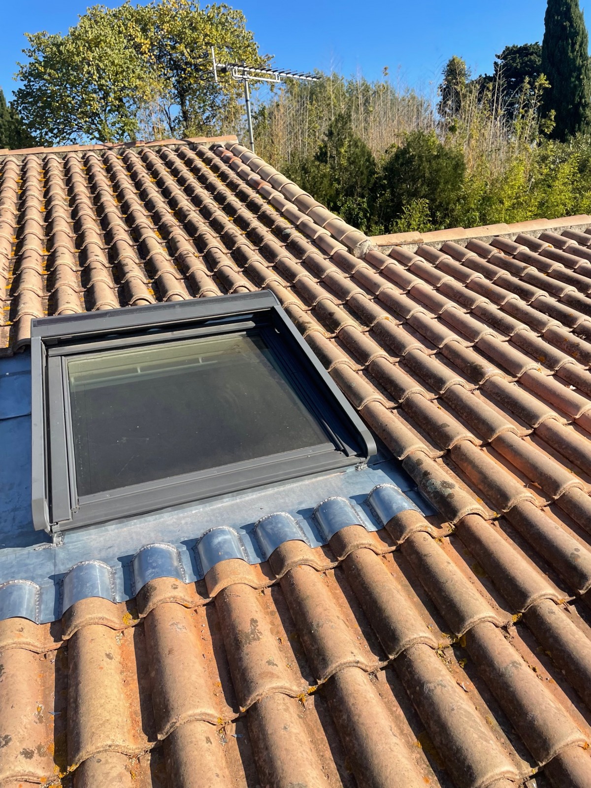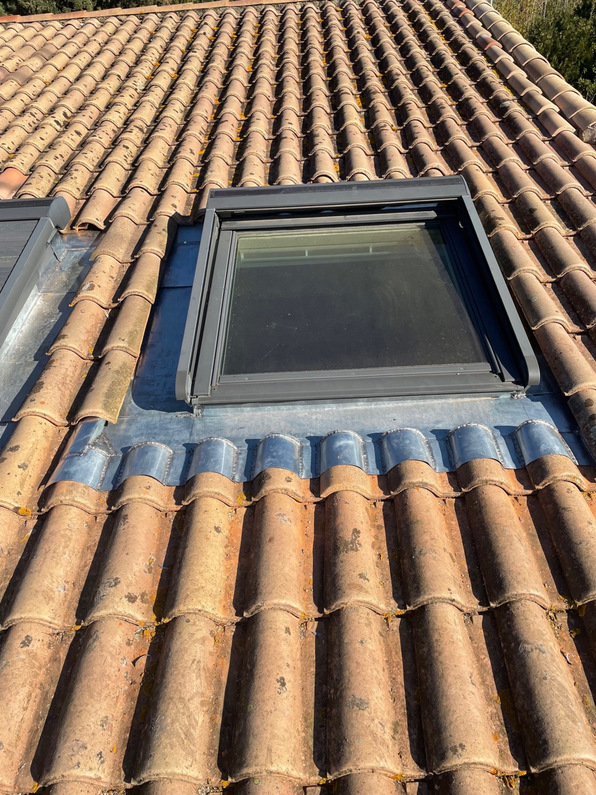 devis gratuit à été établit au client, le travail consister a déposer l’abergement existant autour ainsi que la dépose des tuiles romanes, la mise en place d’un support bois pour accueillir la nouvelle étanchéité en zinc que nous avons nous mêmes fabriqués et façonné sur place a l’aide de nos plieuses a zinc et assurer les jonctions par soudures d’étain.