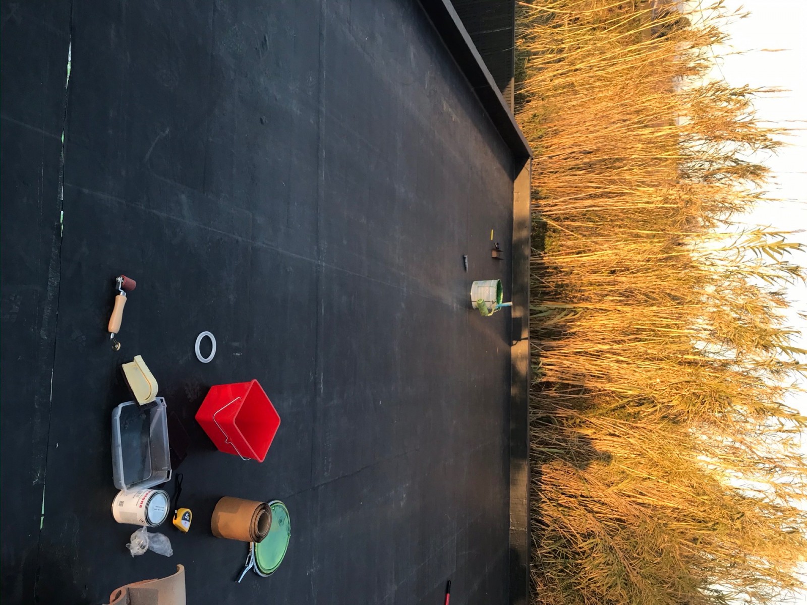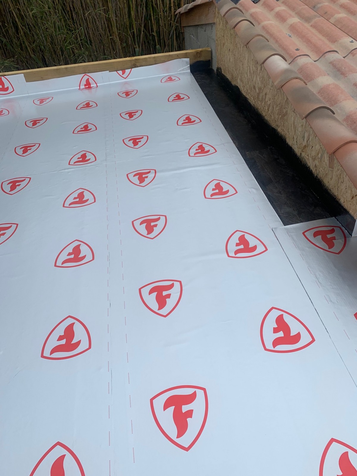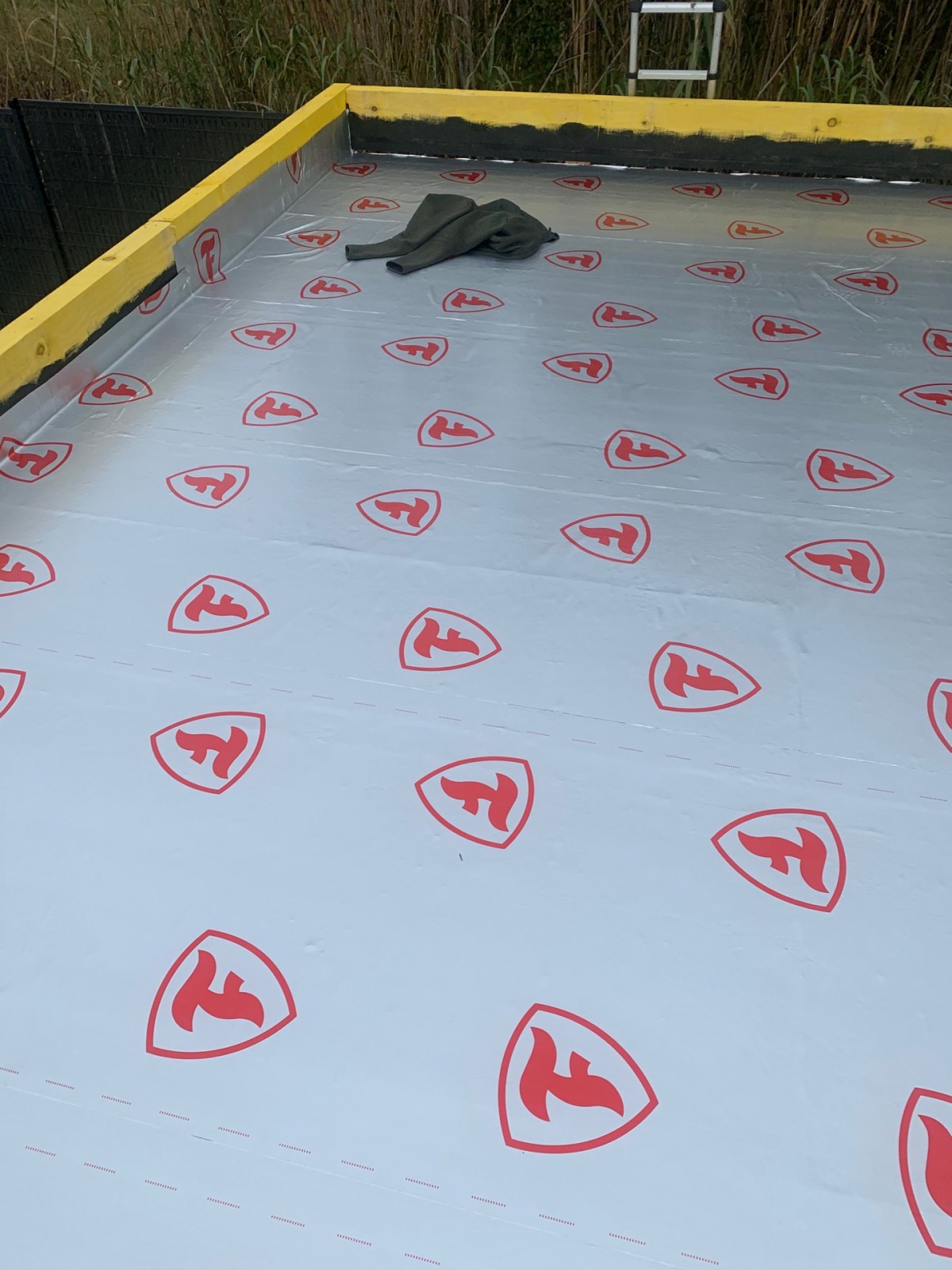 mousse polyuréthane et ensuite la pose de la membrane d’étanchéité EPDM.