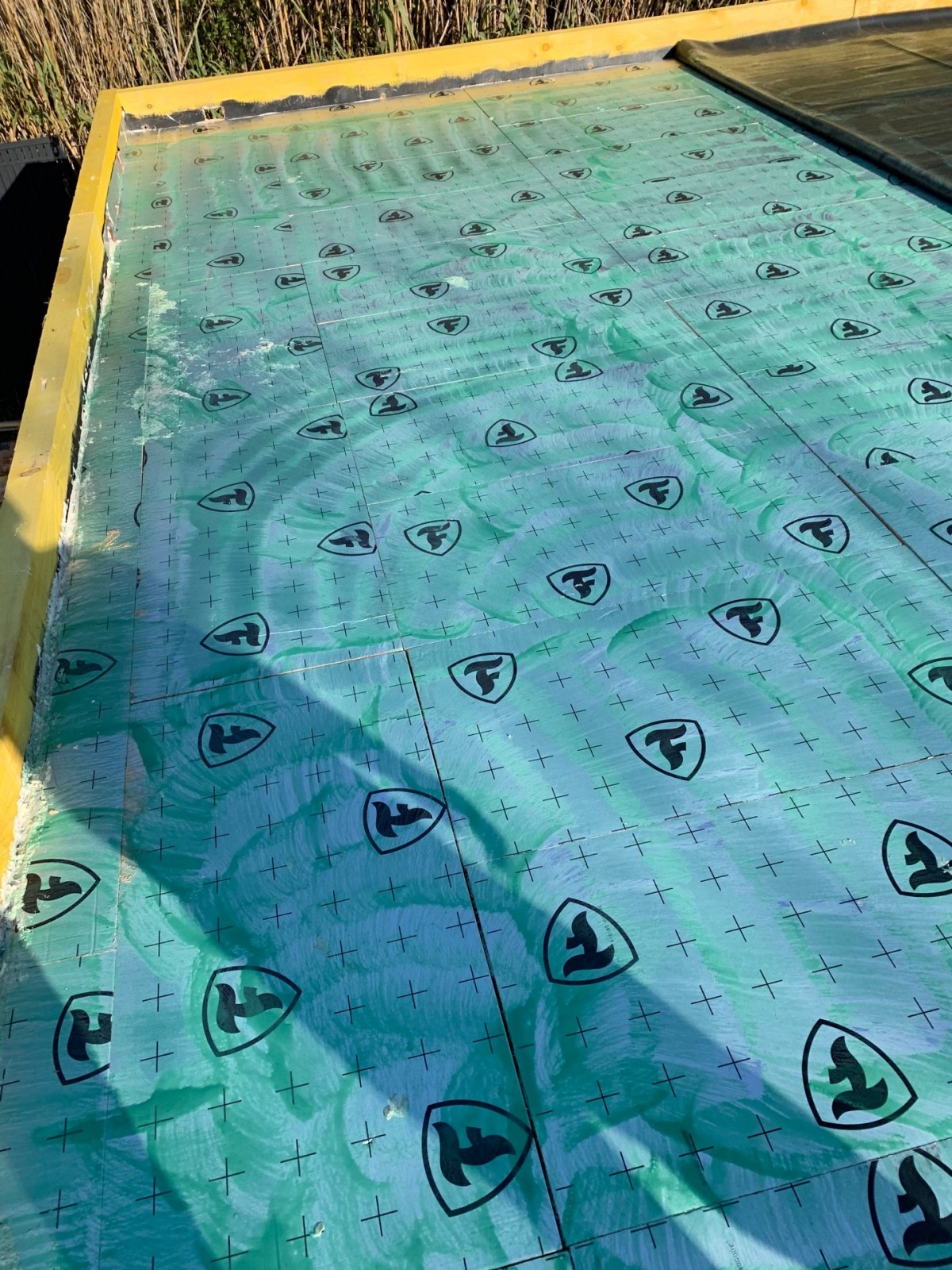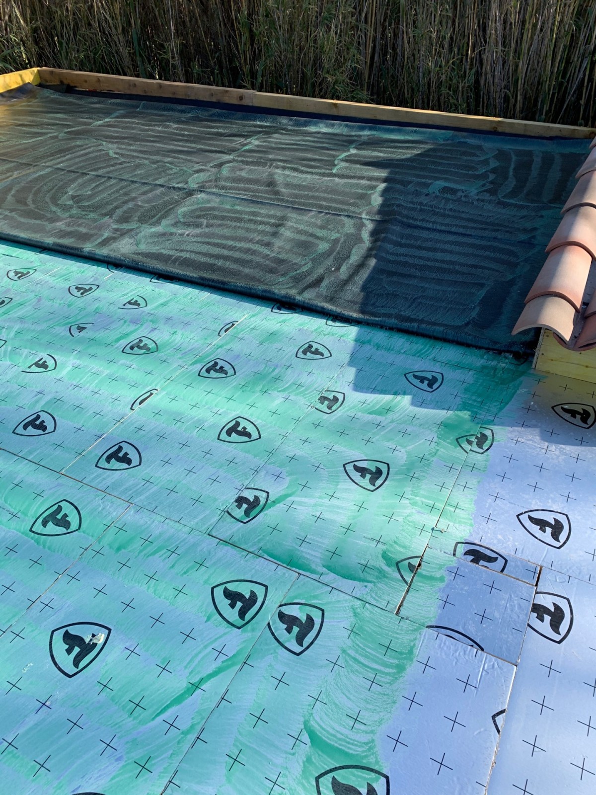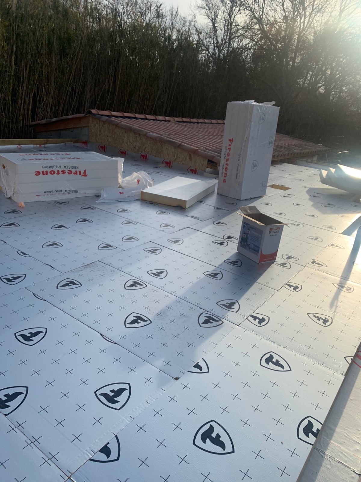 mousse polyuréthane et ensuite la pose de la membrane d’étanchéité EPDM.