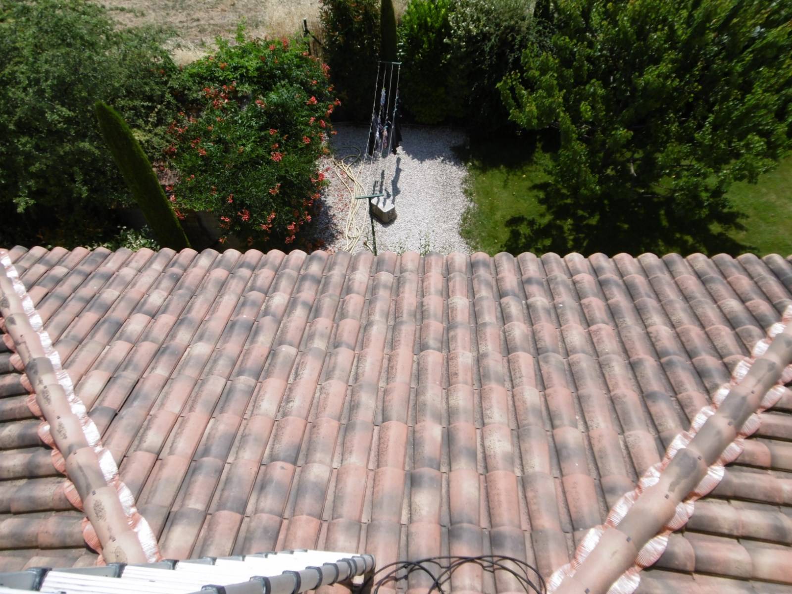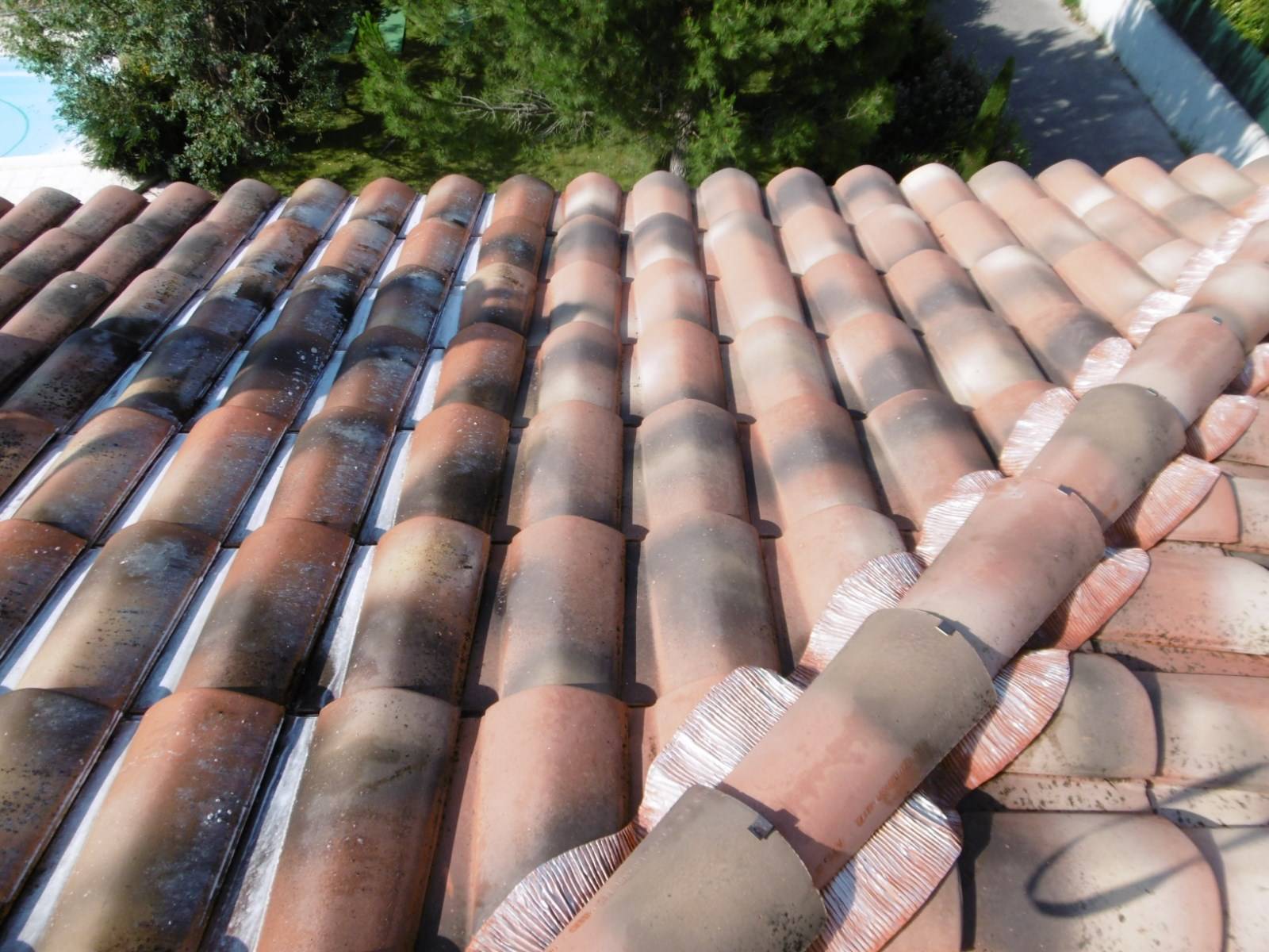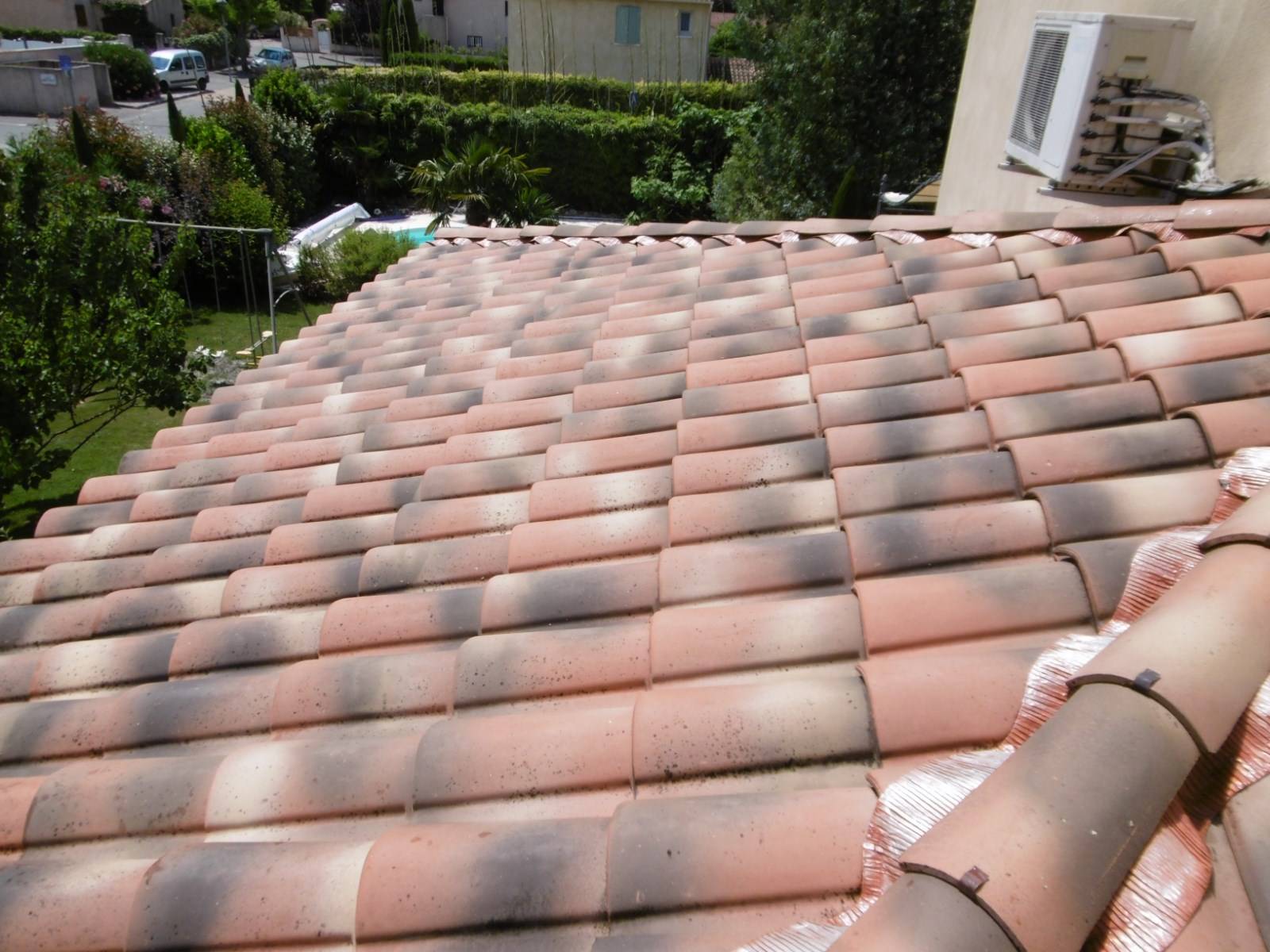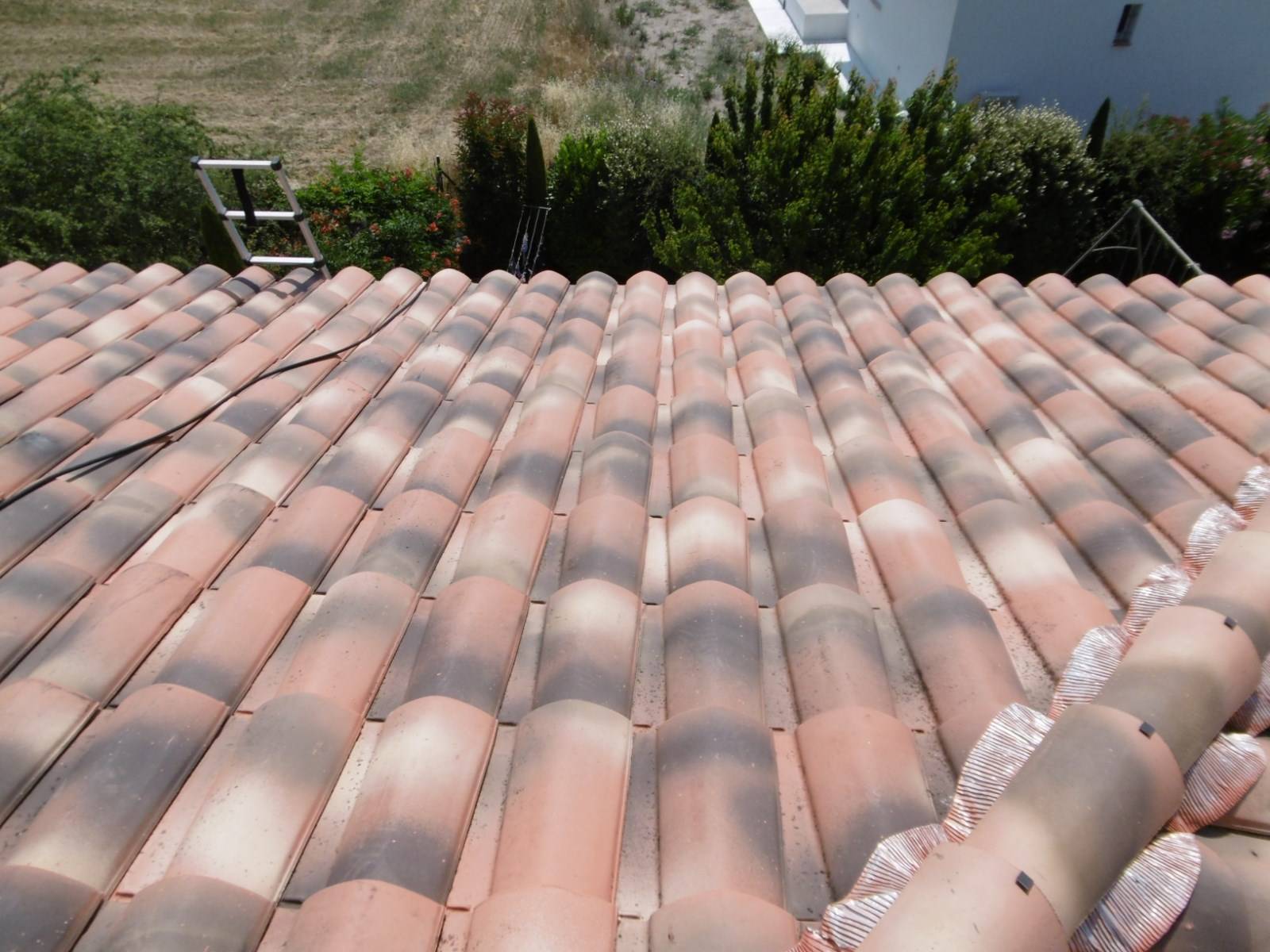 Intervention de nos artisans couvreurs zingueurs dans les Bouches du Rhône 13 à Gardanne près d'Aix en Provence pour le nettoyage et la réparation d'une toiture en tuile ainsi qu'un entretien et d'une réfection partielle pour assurer une étanchéité parfaite et ainsi stopper les infiltrations d'eau ou fuite provenant de la couverture de toit.