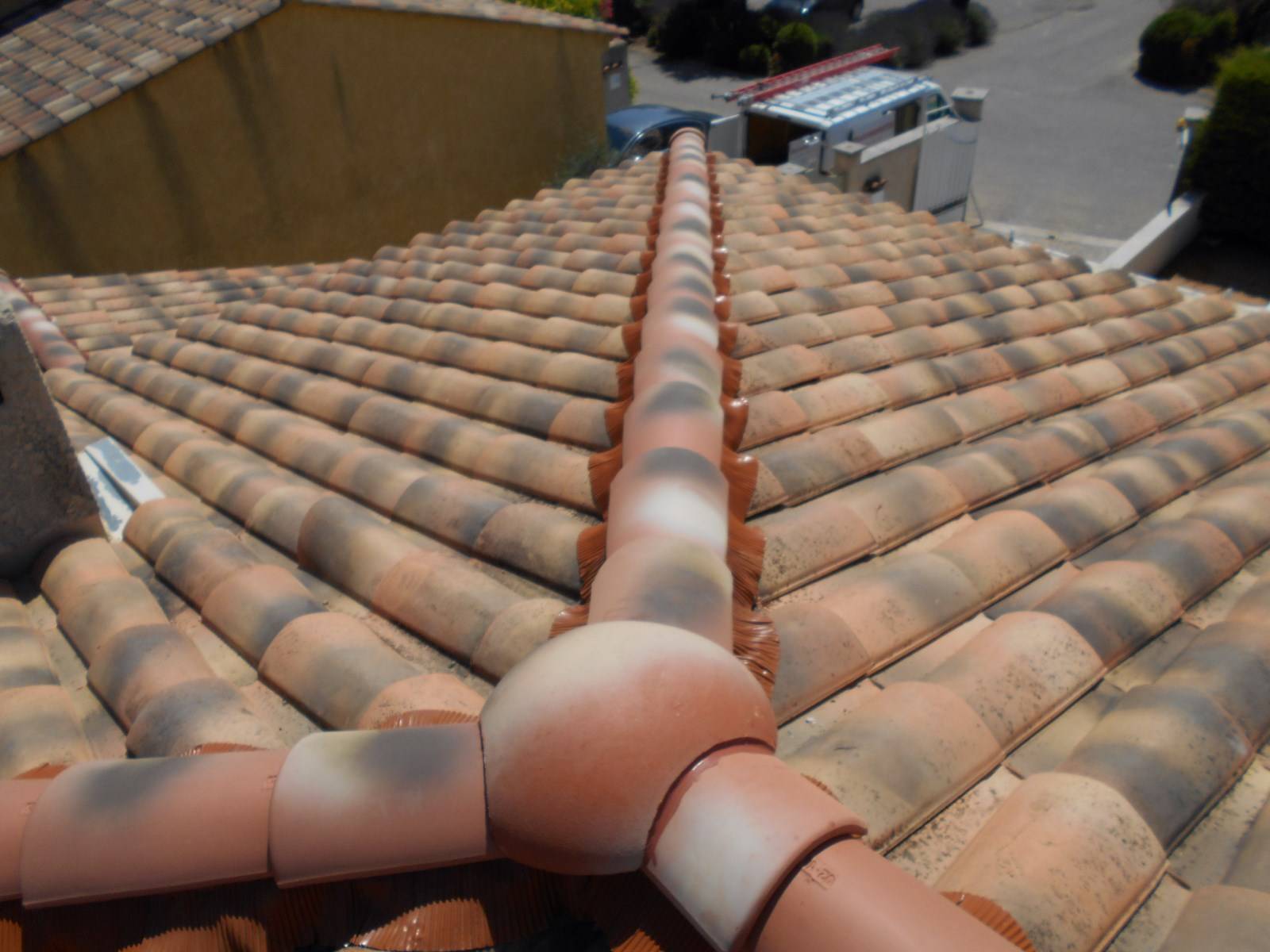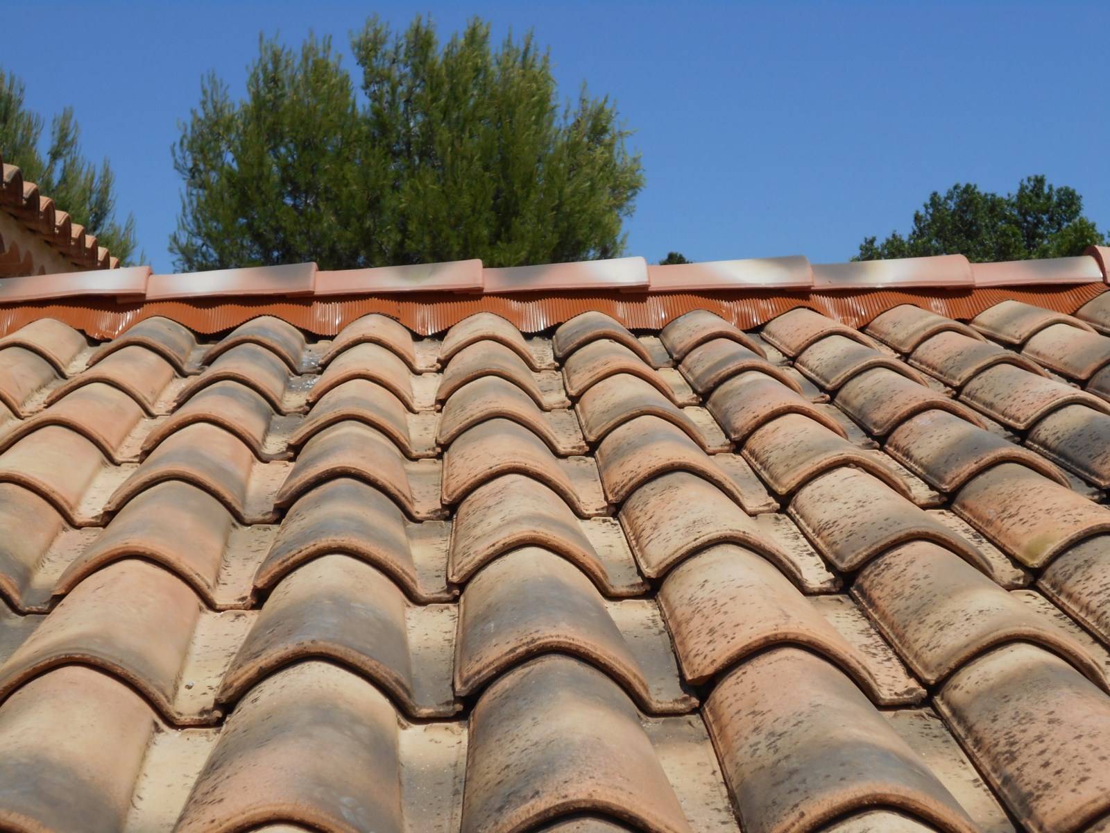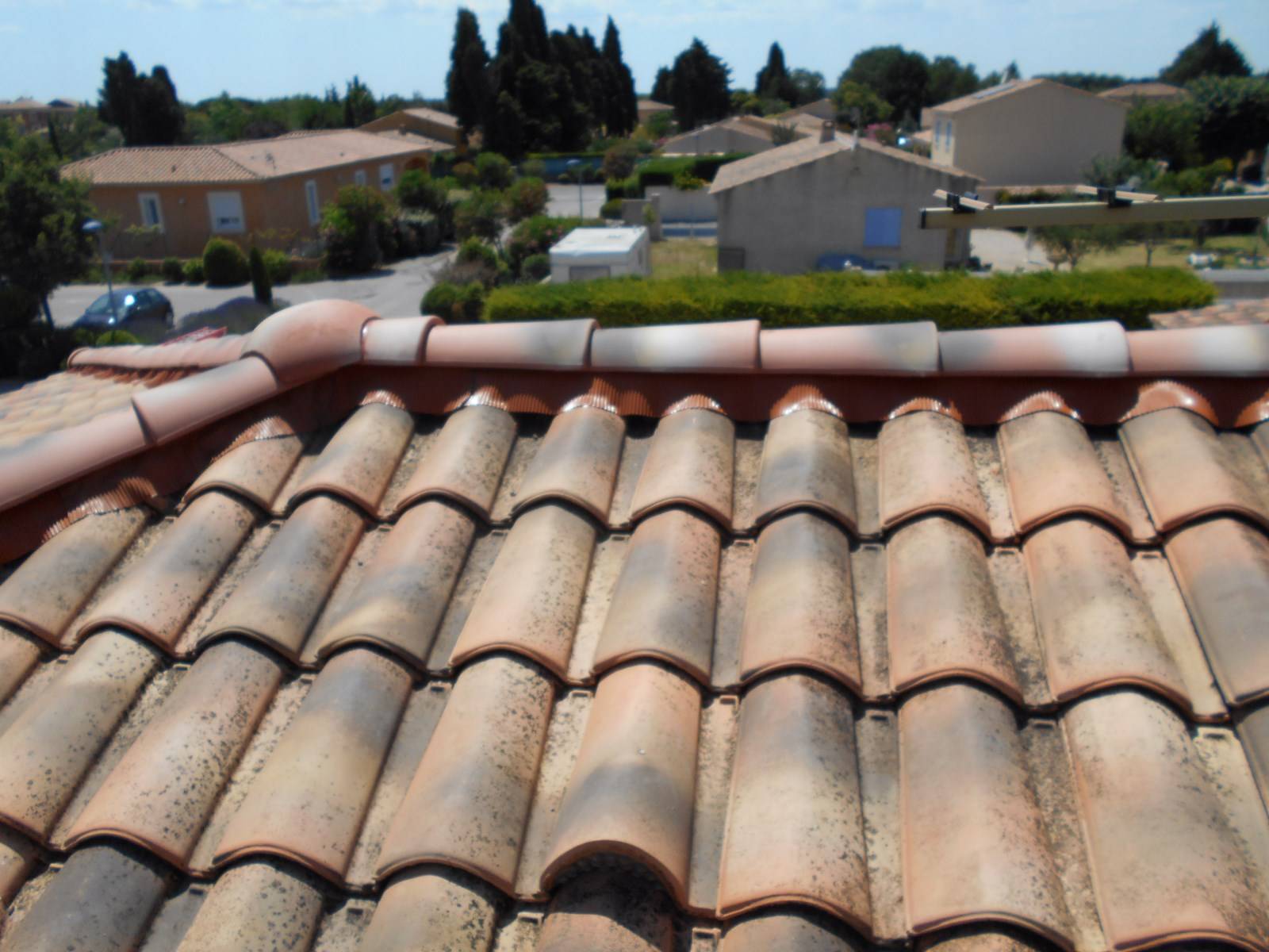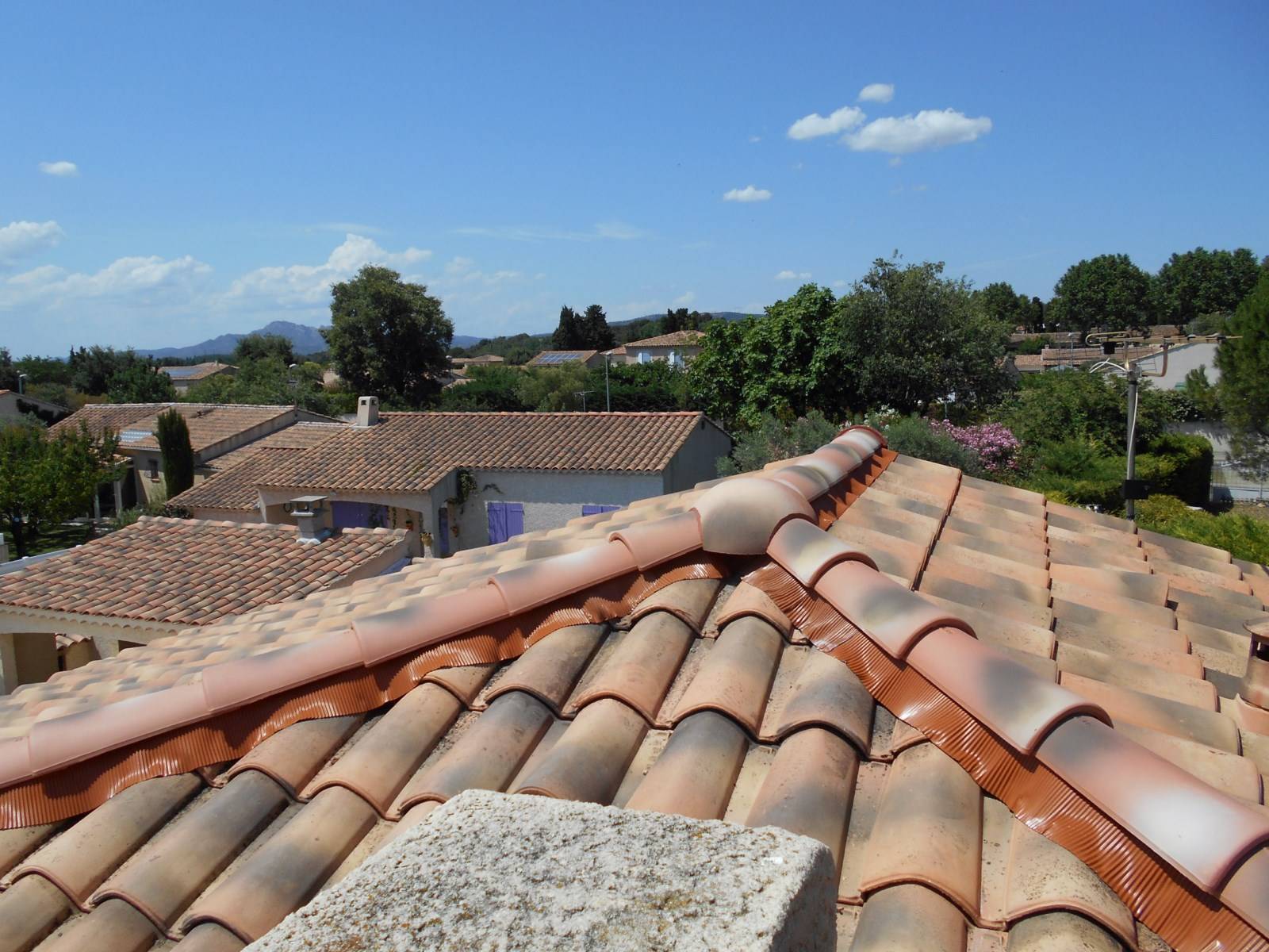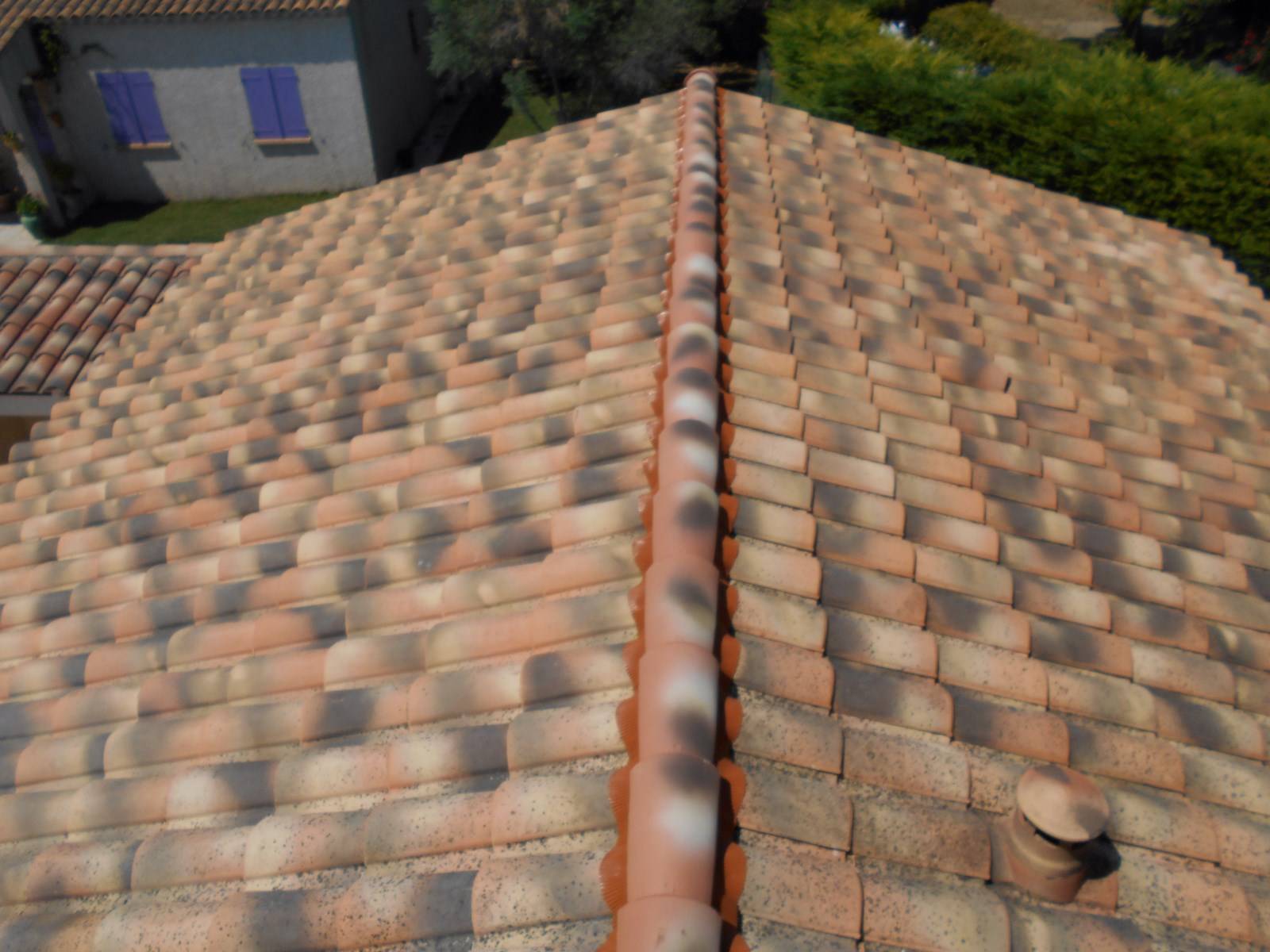 Nos artisans couvreurs zingueurs de Salon de Provence (13330) sont intervenu sur cette toiture pour réaliser des travaux de nettoyage de toit, démoussage de toiture, entretien de la couverture de toit et la reprise des faîtages et pentes d’arêtiers qui ont été déposer pour être refait à neuf.